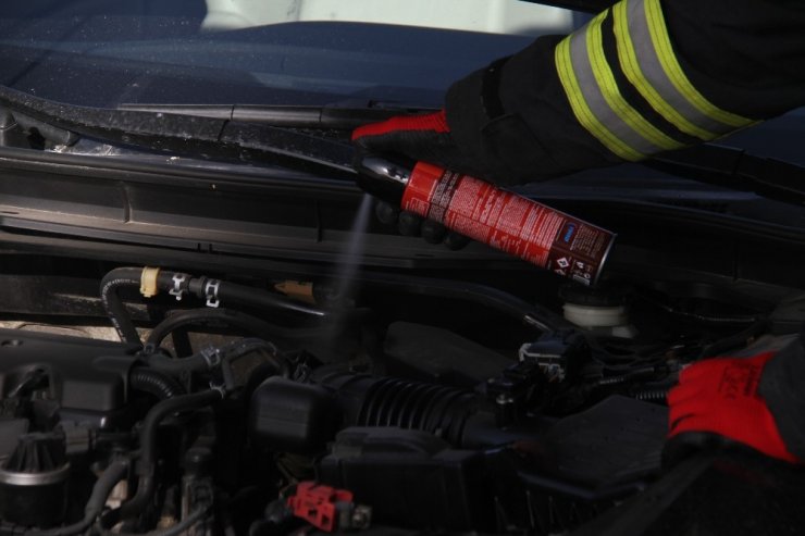 Konya'nın Beyşehir ilçesinde, park halindeki otomobile girdiği ileri sürülen yılan paniğe yol açtı.