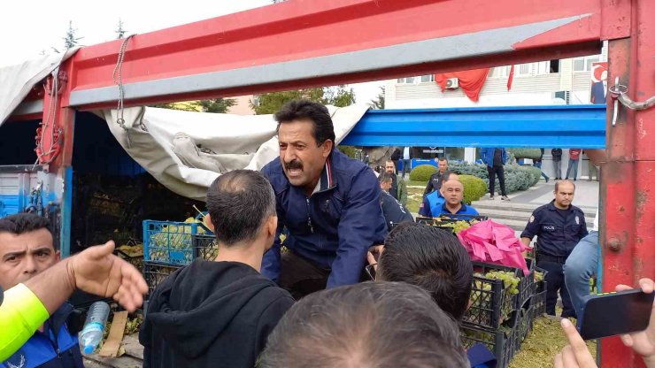 Kırşehir'de bir satıcı, kendisine üzüm sattırmayan CHP'li Kırşehir Belediyesi önünde sinir krizi geçirerek, kasasını belediyeye attı.